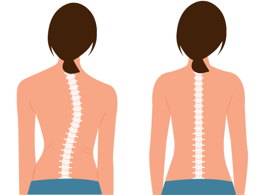 ※脊柱側弯症とは…脊柱(背骨)が、正面から見てまっすぐな状態ではなく、左右に曲がってしまうもの